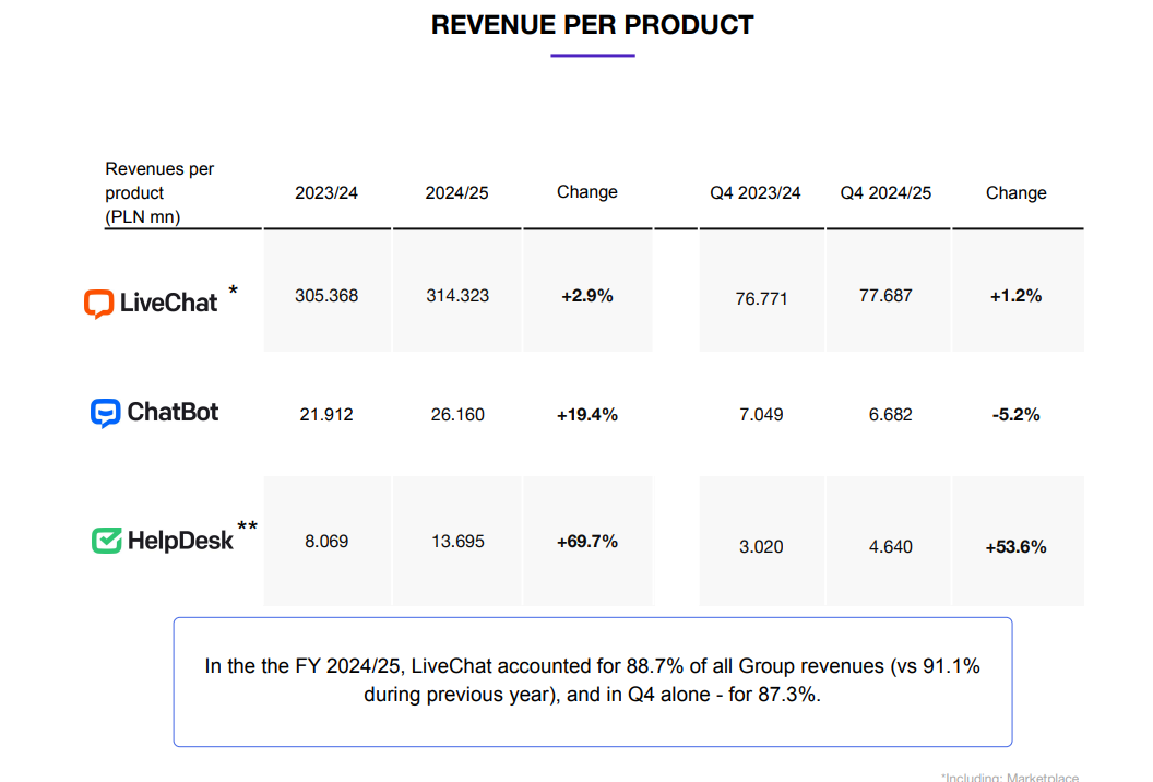 What's encouraging is the stable growth of products beyond LiveChat, along with the declared record dividend. The Management Board proposes to the AGM (Annual General Meeting) a dividend payment of PLN 6.06 per share (taking into account previous interim dividend payments). The Management Board has also requested the Supervisory Board's consent to pay a second interim dividend of PLN 1.51 per share. The proposed Dividend Record Date is July 23, 2025, and the Payment Date is July 30, 2025.